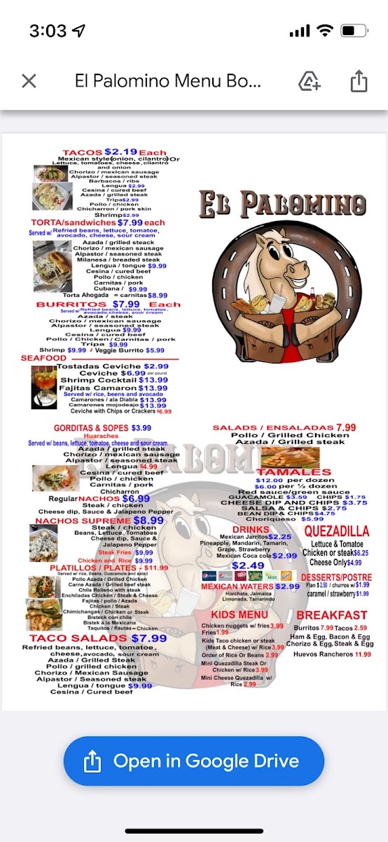 Taqueria El Palomino Menu